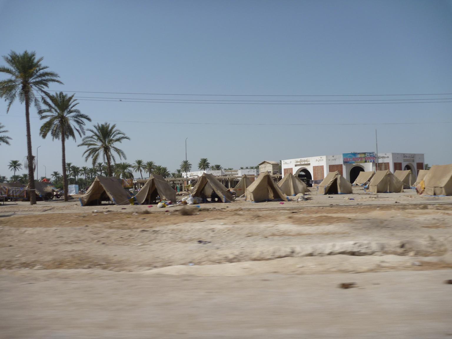 diese Menschen leben voruebergehend neben der Strasse und warten, dass sie wieder zu ihren Haeusern zurueckkehren koennen