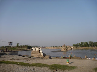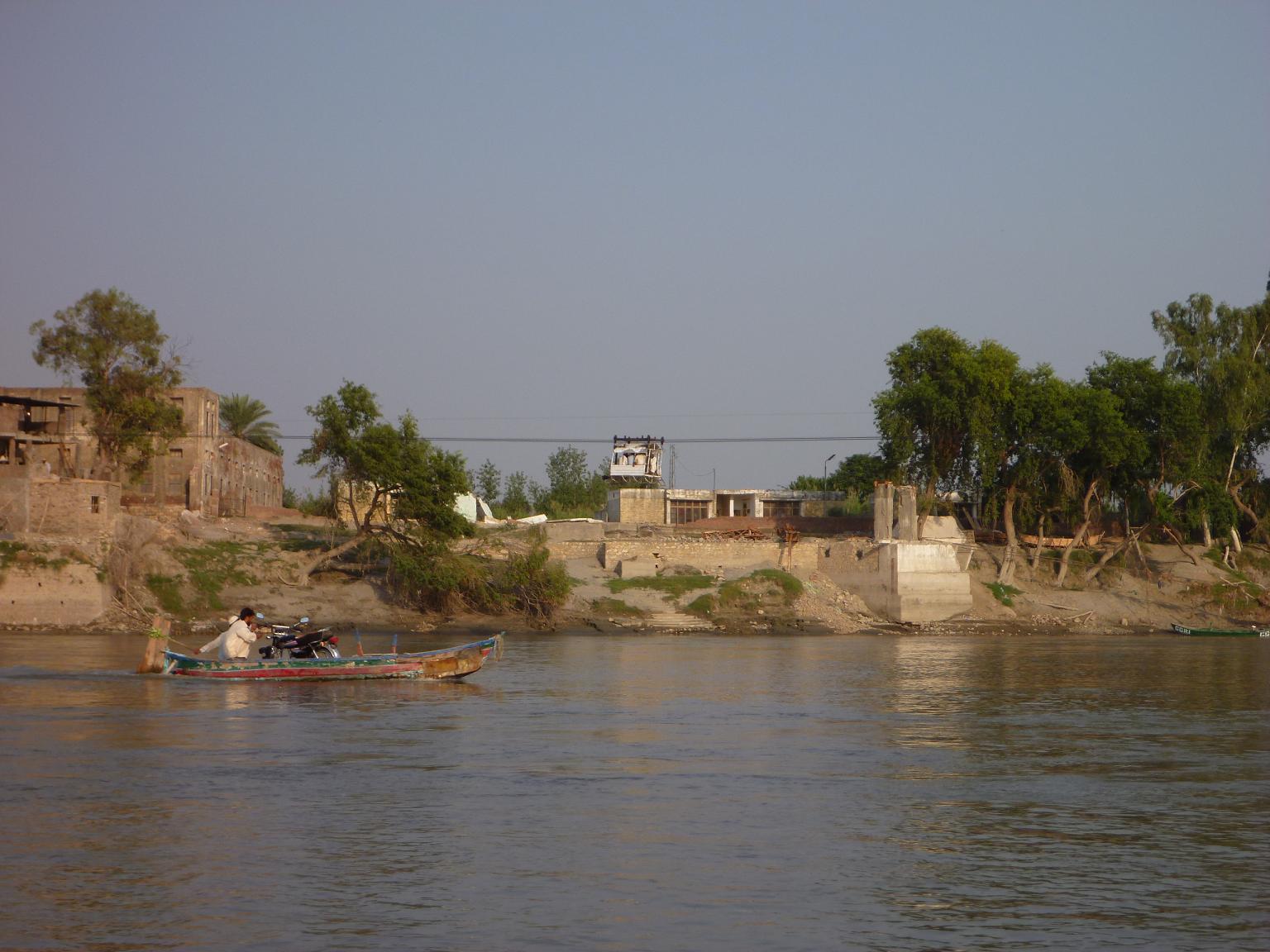 ueberquert wird der Fluss (Indus) mit Boot und Seilbahn